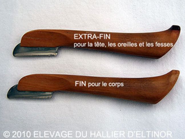 On trouve ces outils spécifiques sur le Web en faisant une recherche, avec les mots clés : accessoires, chiens, toilettage, couteau à épiler.....